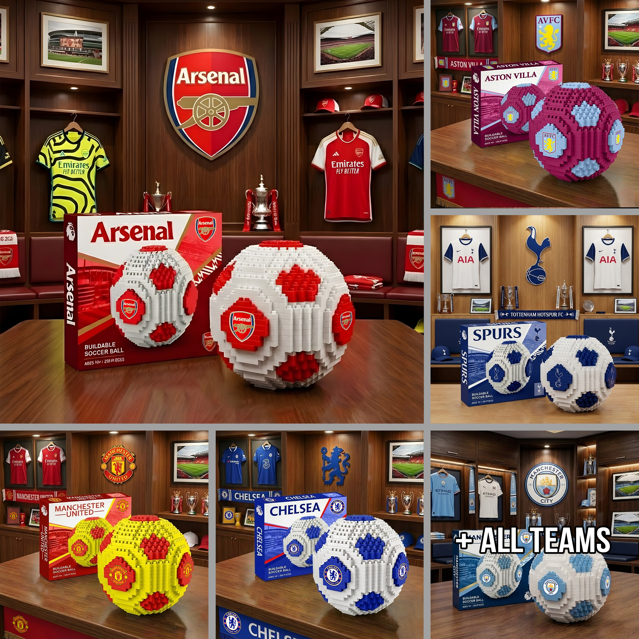 Each version features the club’s signature colors and emblem tiles, delivering a premium and instantly recognizable display piece.