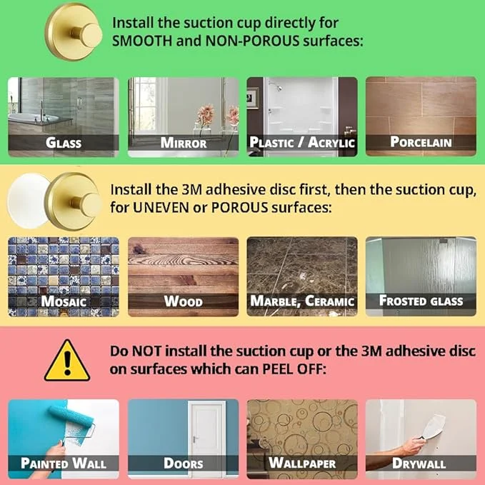 Our Superior Vacuum Suction Technology lets you install these hooks with ease, while enhancing the beauty of your bathroom. Once installed, their sleek and clean appearance will make you wonder if they're really suction cups!