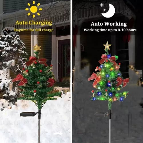 The outdoor solar garden lights with IP42 waterproof feature, even in bad weather work well and long lasting. The Xmas tree is solar energy powered, and upgraded solar panel,they can convert sun energy faster and more efficiently.