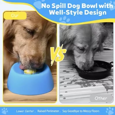 Anti-Slip Silicone Base 🦴🛡️ – Secure silicone rim prevents slipping so your dog can enjoy meals without chasing the bowl.