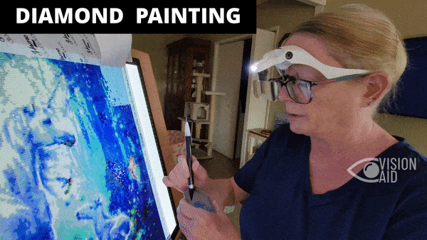 The VisionAid spotlight shines exactly where you look, so stitches, puzzle pieces, and paint-by-number sections are always clear.